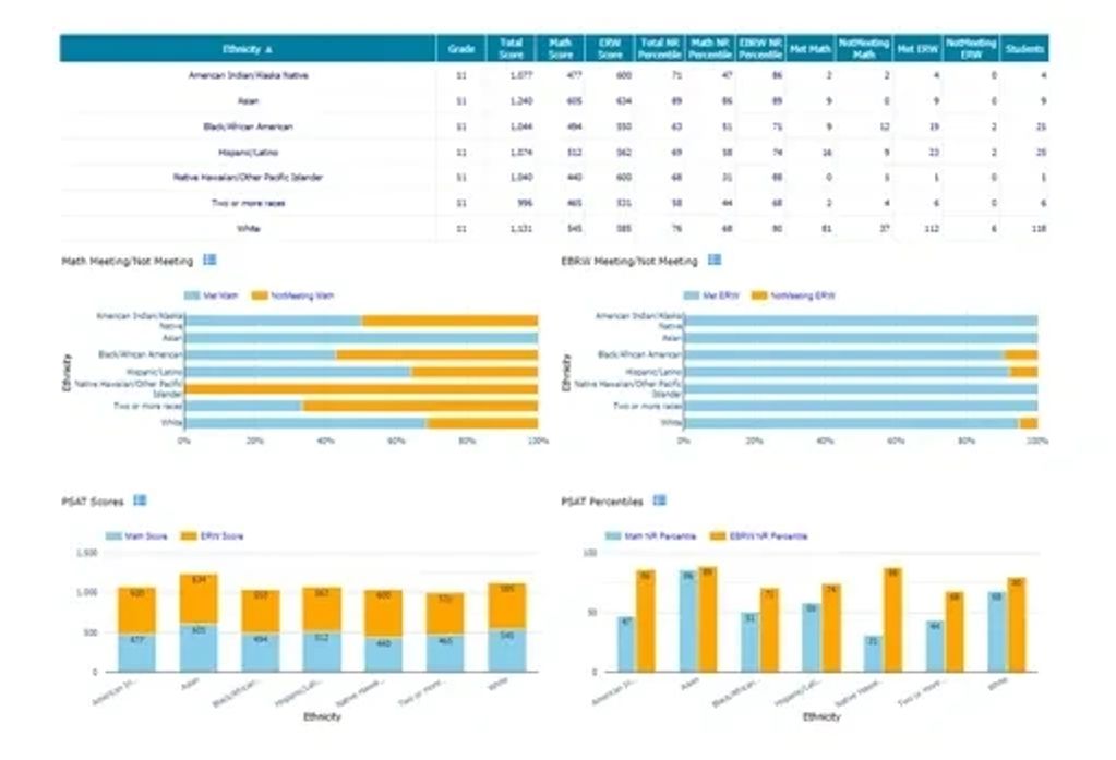 This integrated data analytics platform automatically merges the data from student information systems other local and public data sources to create comprehensive graphs and charts. This empowers school staff to quickly pinpoint patterns, differences, ranks, trends, and